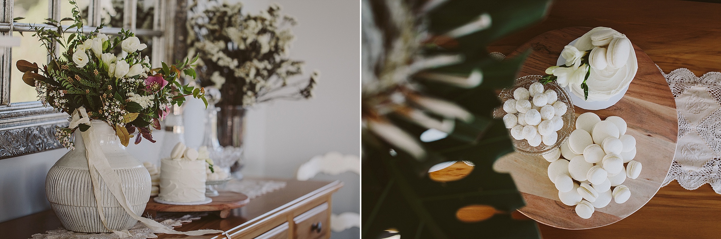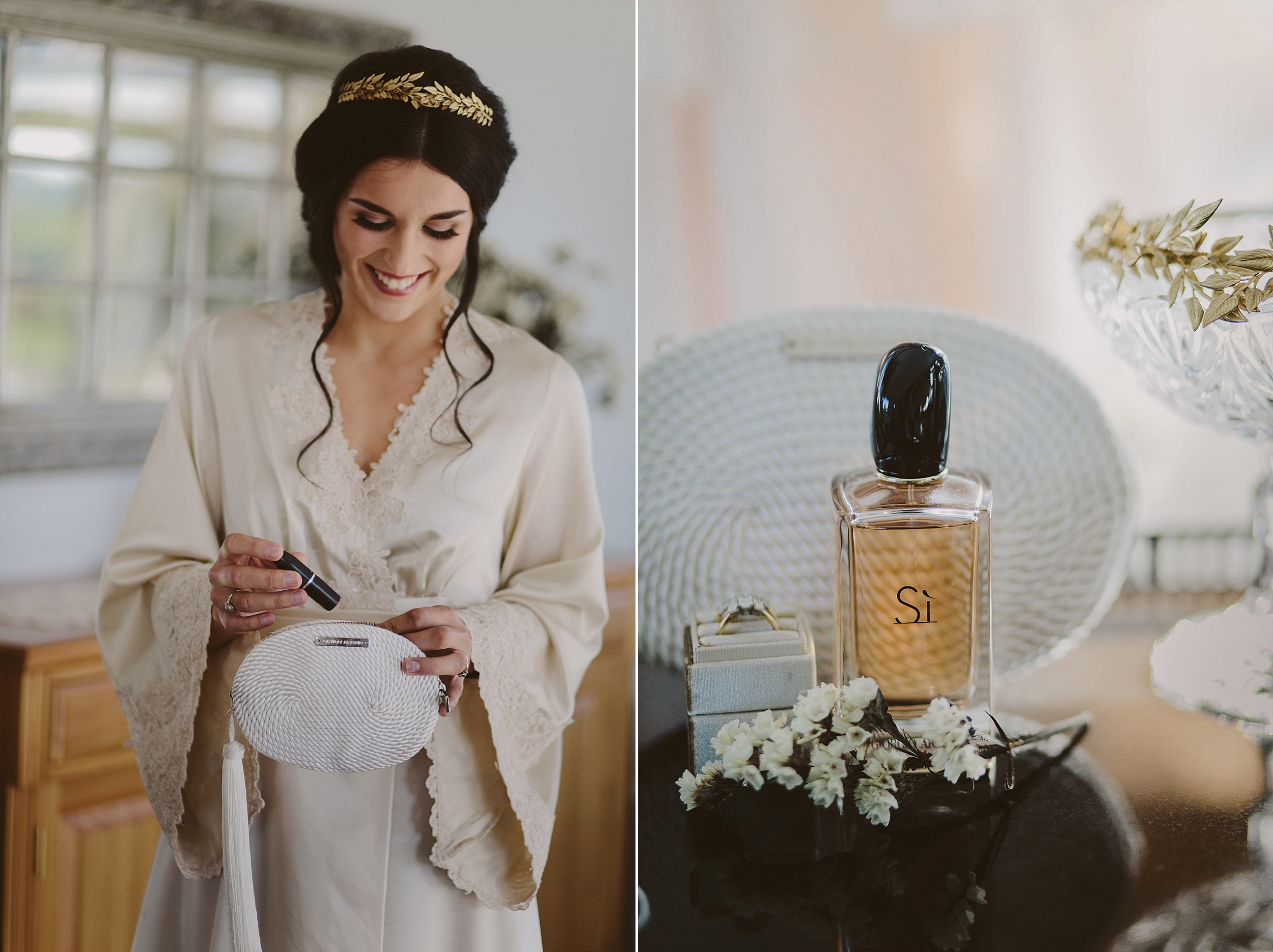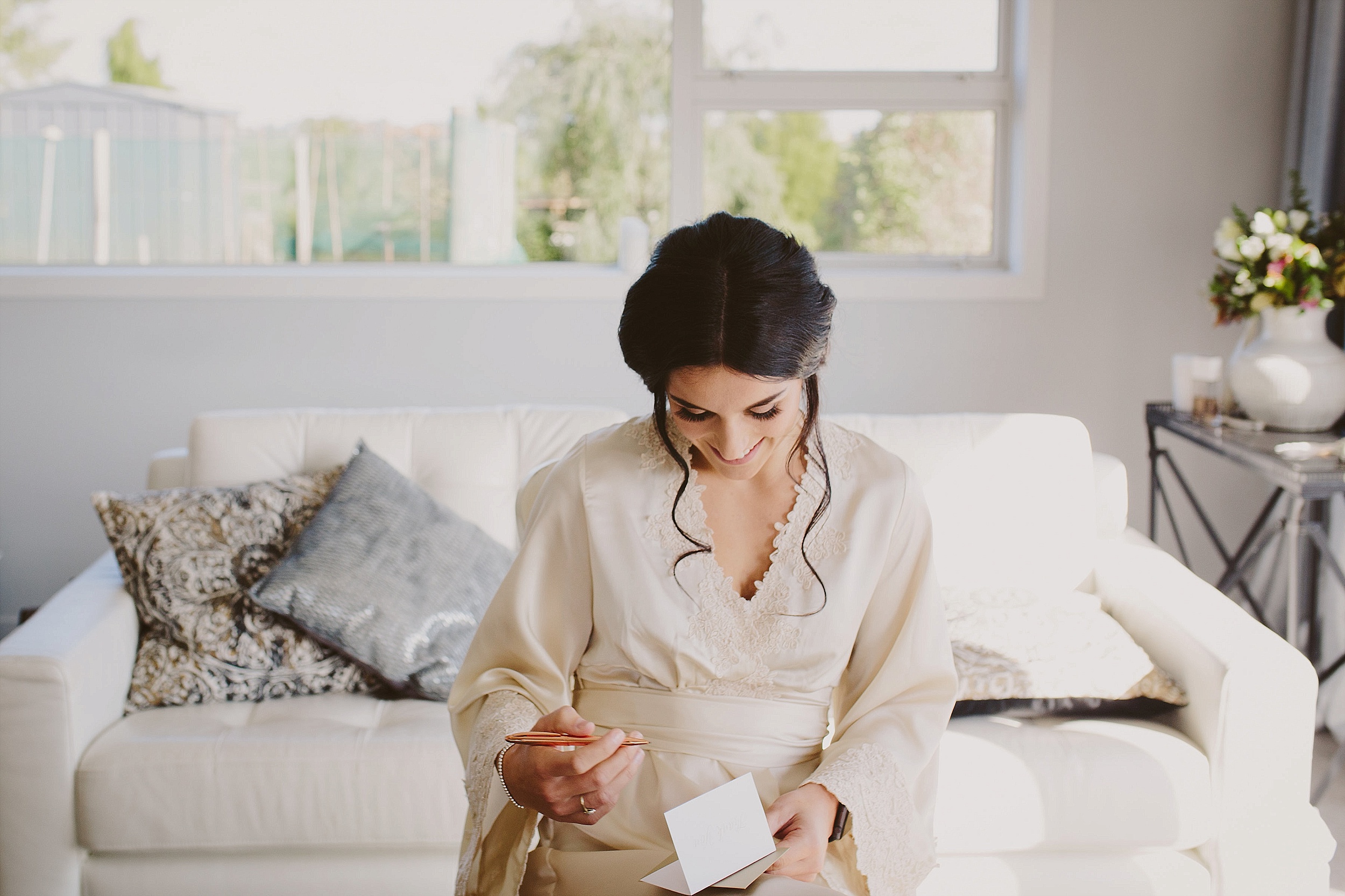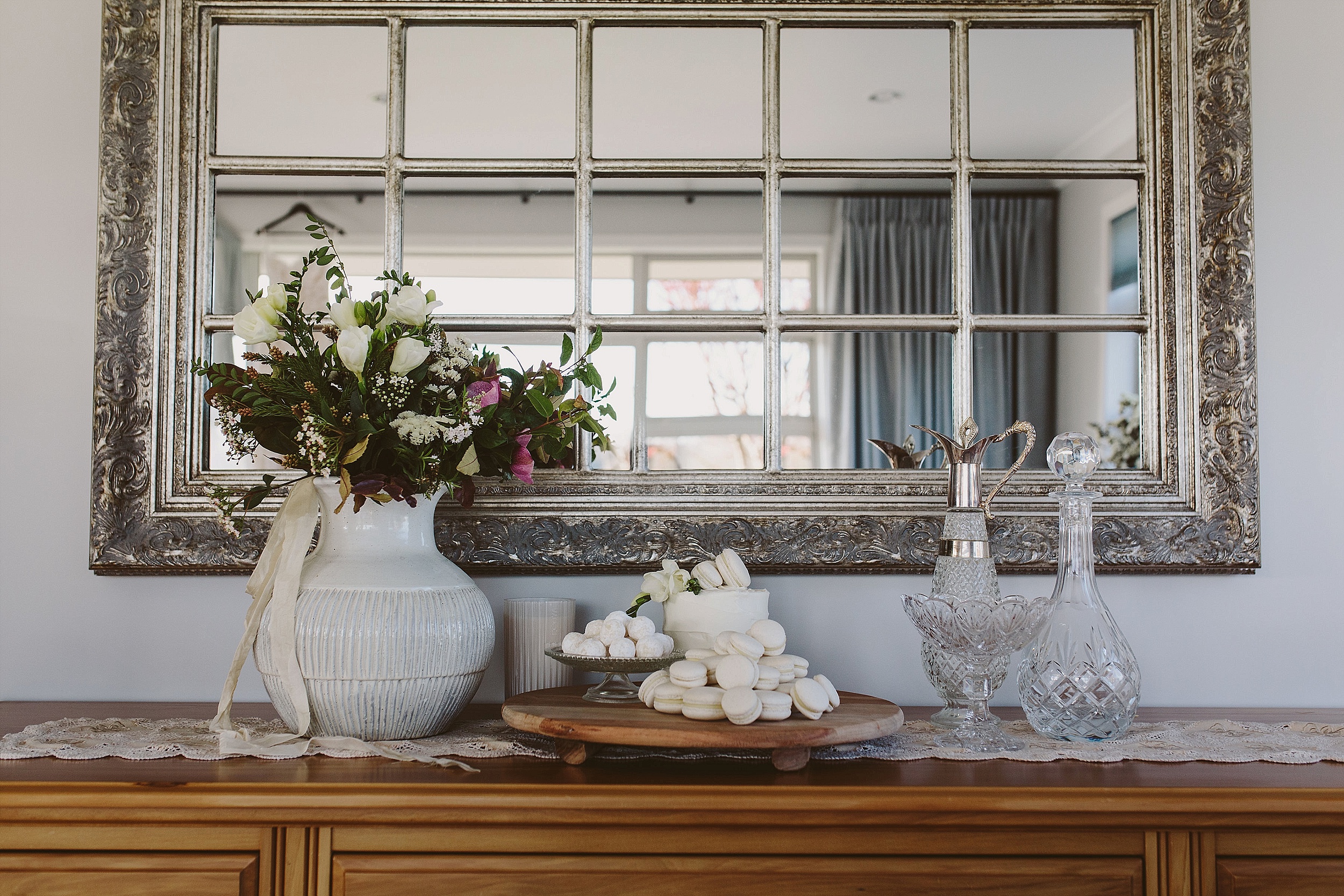You want your preparation space to be bright, pretty, uncluttered and large enough for everyone to fit. Trust me on this one: a small motel room (largely taken up by a double bed) is not going to accommodate your bridal party, artist/stylist, photographer and the extra people that come and go as part of this busy morning.