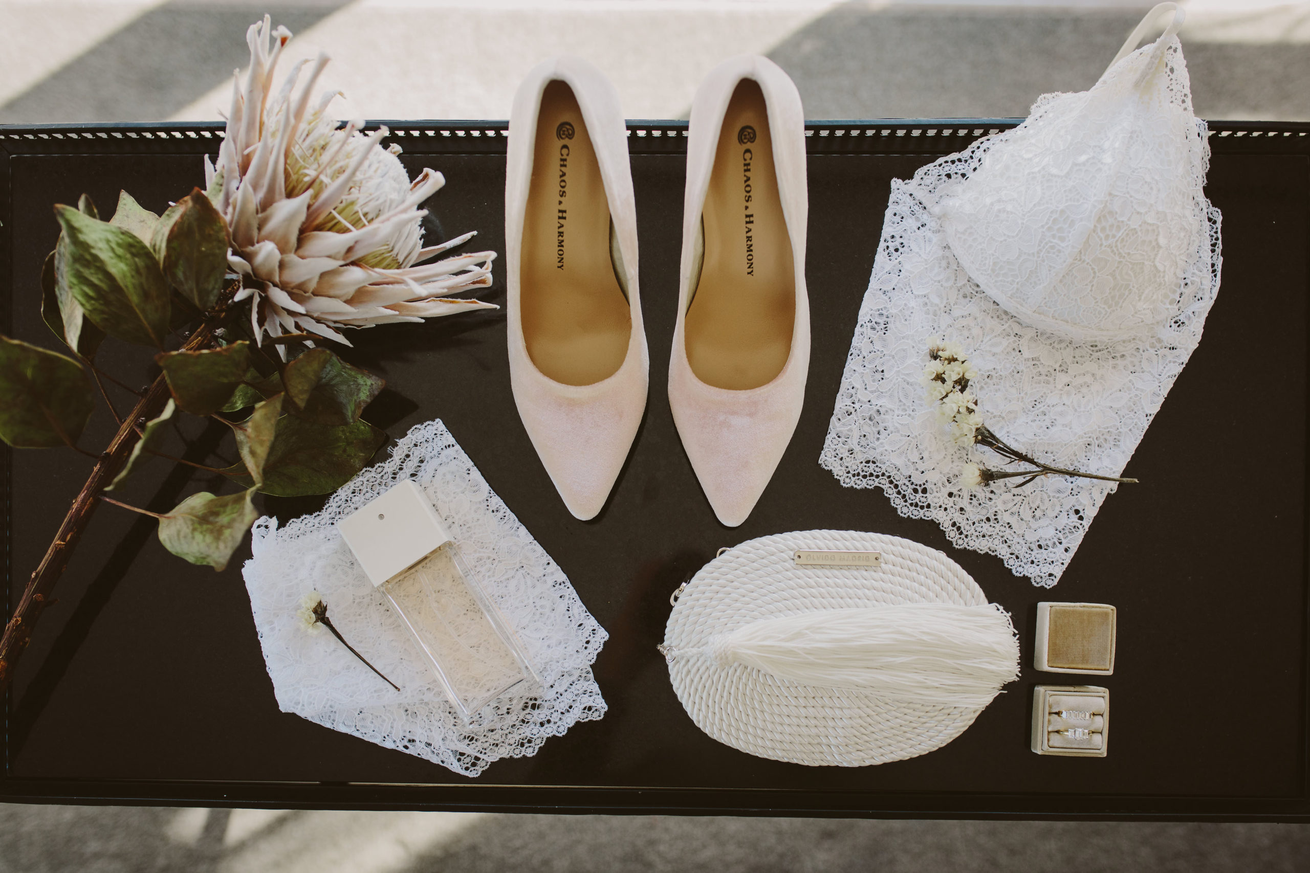 It is a great idea to have a set space for all your pretty bits. Somewhere where you can have jewellery, your something old, borrowed and blue, shoes, a copy of your wedding invitation and any other pieces you would like captured by your photographer.