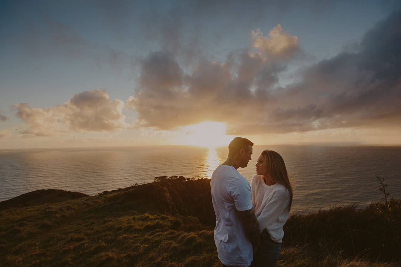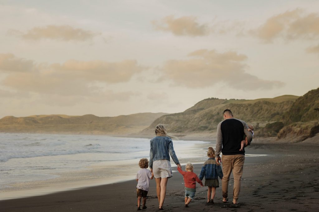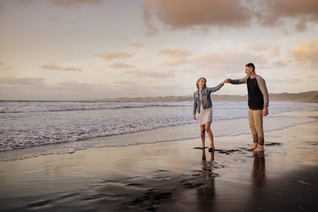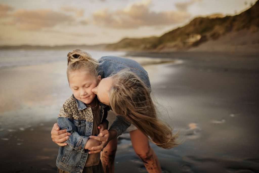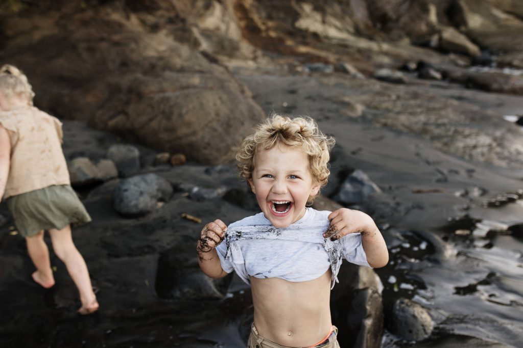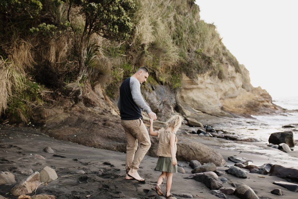 The Turners Raglan family photo session was one of those shoots that started out a little crazy, and in all honesty, half way through I wasn’t sure if I had more than a handful of good photos for them. I remember Nicole looking at hubby and saying’ this is a bit of a disaster!’. But so often shoots feel chaotic, and crazy, and with four young kids this is exactly what I had expected from the Turners shoot. This is why my session times aren’t limited to a certain number of minutes, it’s so helpful to have some buffer time for breaks, snacks, and to tip the toes in that delicious Raglan sea. After letting the kids have a run around on the beach and do some rock hopping, they were much more cooperative. It always works out….and if it doesn’t, I’ll get you back for another try (after doing hundreds of family shoots I have only ever had to do this twice)! We finished the session with some gorgeous smiling playing images, and to top it off we got the best of those Raglan sunsets for romantic couples shot!